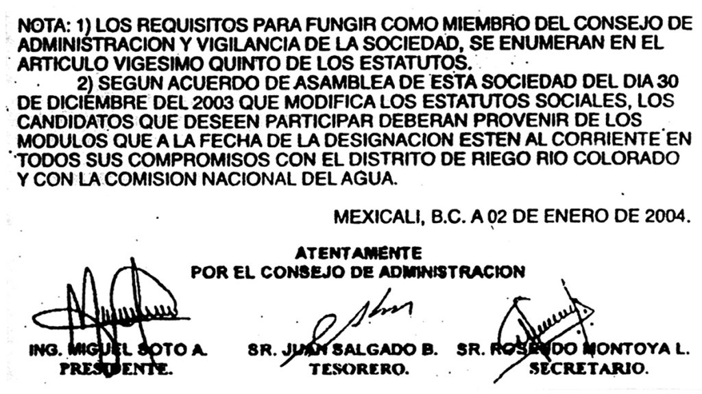 MEXICALI. – Con 6 votos a cero, la planilla Roja del Canal Independencia, para ocupar la Secretaría Administrativa de la S. de R.L. concesionaria de la Red Mayor del Distrito de Riego, se impuso a la Verde, durante accidentada asamblea, por la intromisión de usuarios ajenos al proceso electoral y la agitación de quienes, por muchos años no han logrado el apoyo mayoritario para ganar.