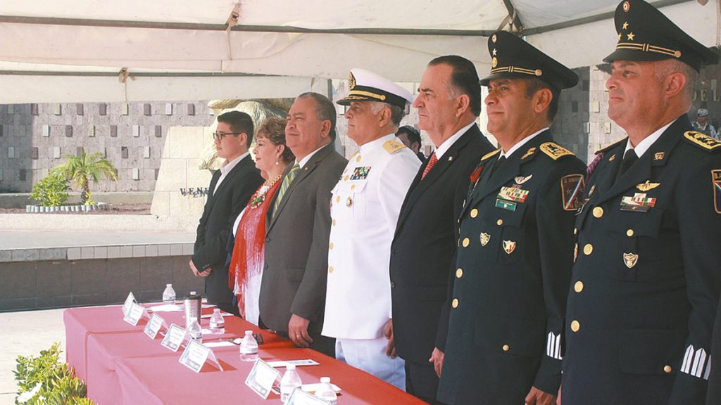 Acompañado por los mandos militares de Secretaría de Marina (Semar) y la Secretaría de la Defensa Nacional (Sedena), así como de autoridades gubernamentales, el primer edil presenció la participación de cada uno de los organismos militares, de seguridad pública, educativos y deportivos que conformaron el contingente.