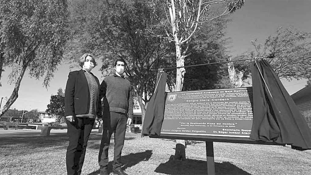 MEXICALI. – La Universidad Autónoma de Baja California (UABC), otorgó el reconocimiento al Mérito Universitario al periodista Sergio Haro Cordero con la designación de su nombre a la explanada central de la Facultad de Ciencias Humanas (FCH), punto en el que convergen alumnos y profesores de esta unidad académica.
