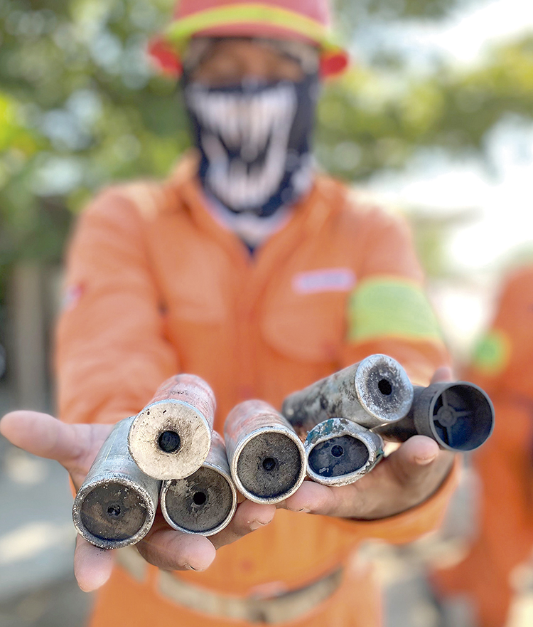 Un video que circula en redes sociales muestra cómo uno de los trabajadores fue herido en el ojo y gritó de dolor.