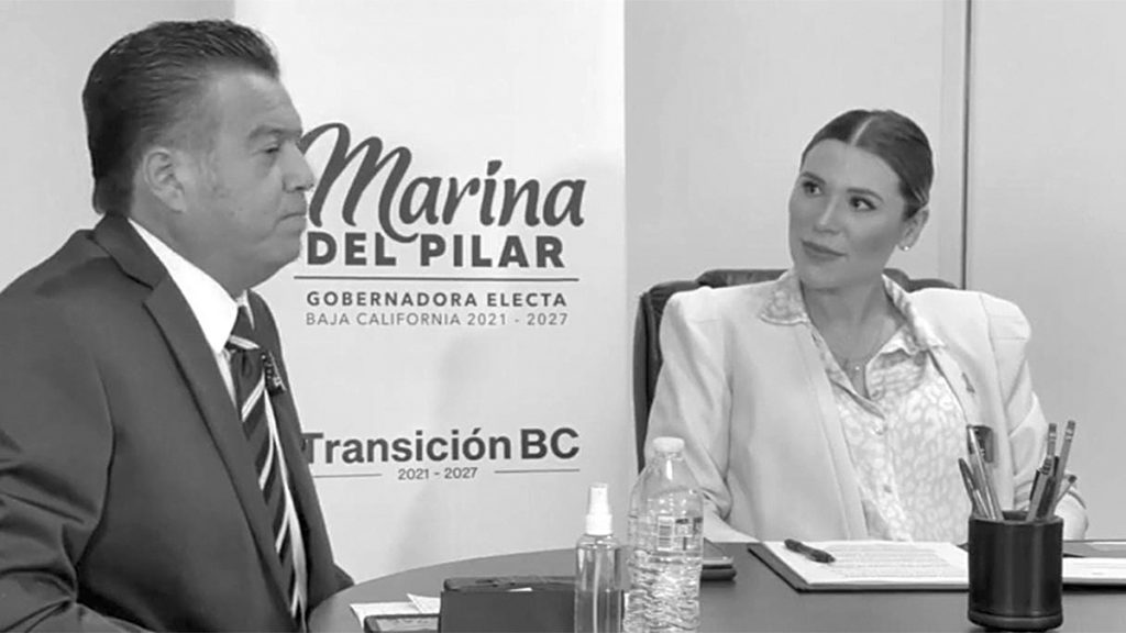 Juan Meléndrez Espinoza junto a la gobernadora Marina del Pilar Ávila Olmeda.