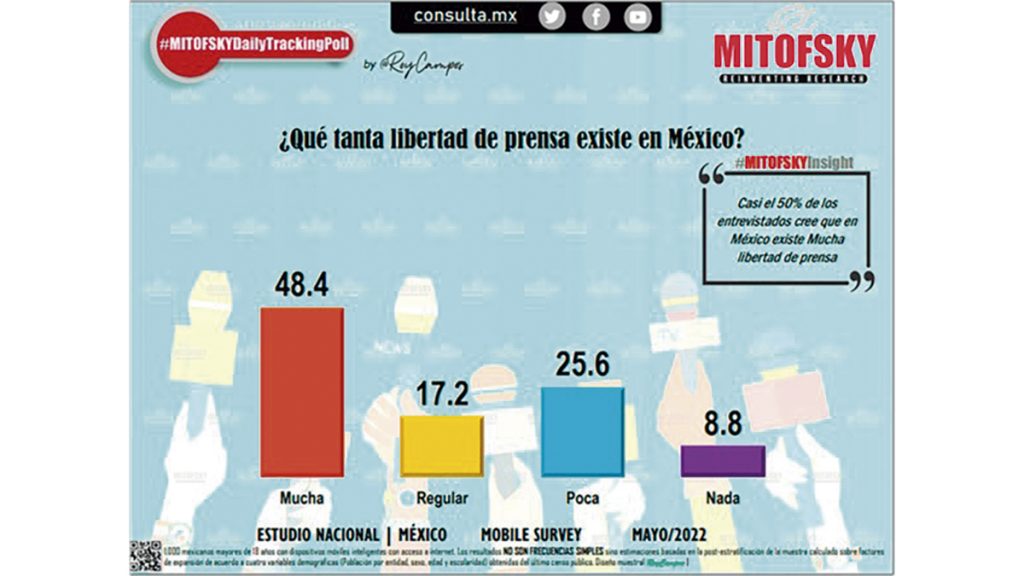 A pregunta expresa sobre qué tanta libertad de prensa existe en México, casi el 50% de los entrevistados consideró que en el país hay «mucha» libertad.
