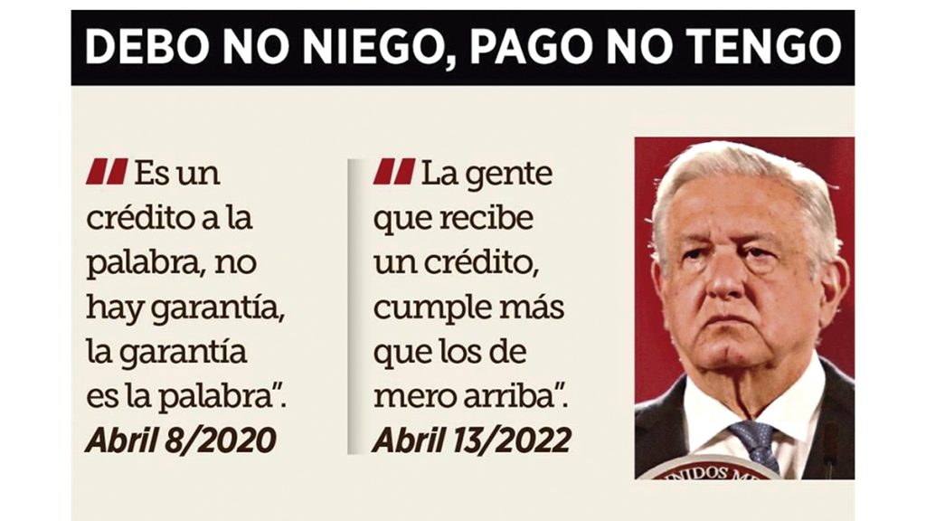 «El pueblo de México es un pueblo honesto, la gente que recibe un pequeño crédito, una tanda, cumple más que los de mero arriba», dijo López Obrador el 13 de abril, luego de que REFORMA revelara que el 83 por ciento de quienes solicitaron una tanda de 6 mil pesos, a liquidar sin intereses en un año, no cumplió.