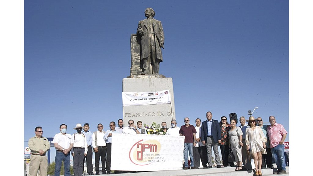 MEXICALI. – Con la cita de “no se mata la verdad matando periodistas”, como grito desgarrador que clama por la vida, representantes de los medios de comunicación escrita, y de todos los medios electrónicos, integrantes de las diversas agrupaciones, hicieron una guardia de honor en el monumento a Francisco Zarco.
