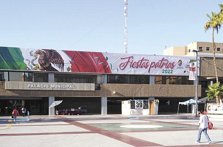 Manta alusiva a Fiestas Patrias; colectivo modifica imagen de MEXICALI MEXICALI. – En el palacio…