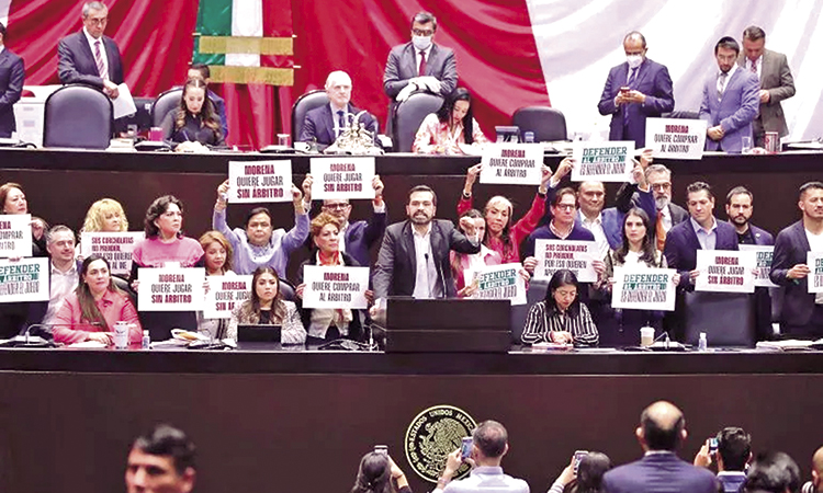 CIUDAD DE MEXICO.- Las diputadas y los diputados federales del PRI, encabezados por el dirigente nacional de este instituto político, Alejandro Moreno y el coordinador Rubén Moreira, votaron en contra del dictamen de la reforma electoral del gobierno de Morena y, con ello, dieron cumplimiento al compromiso que asumieron con la ciudadanía que marchó el pasado 13 de noviembre en defensa de la democracia y del Instituto Nacional Electoral (INE).