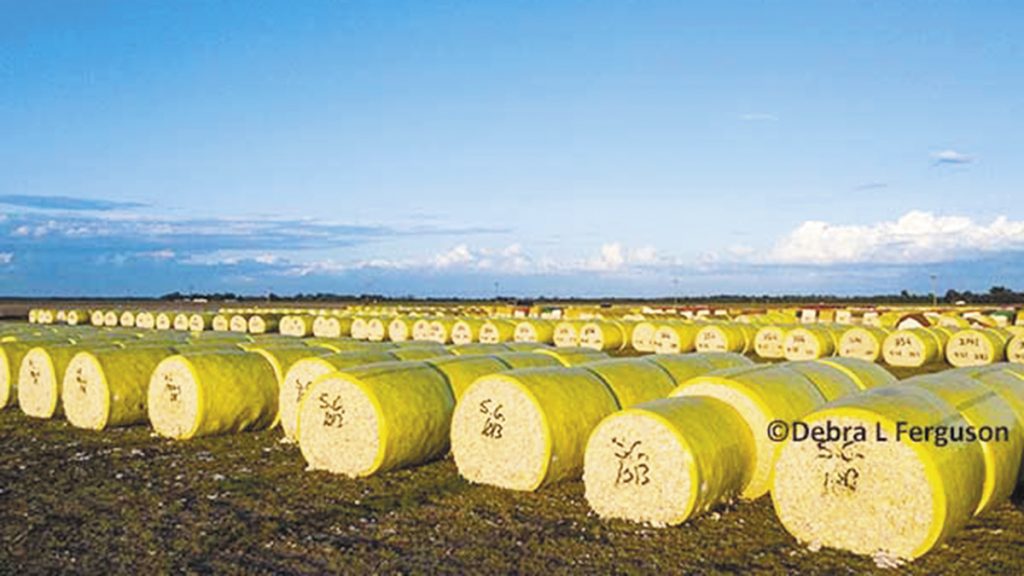 Módulos de algodón alineados en un patio de ginebra. ©Debra L Ferguson