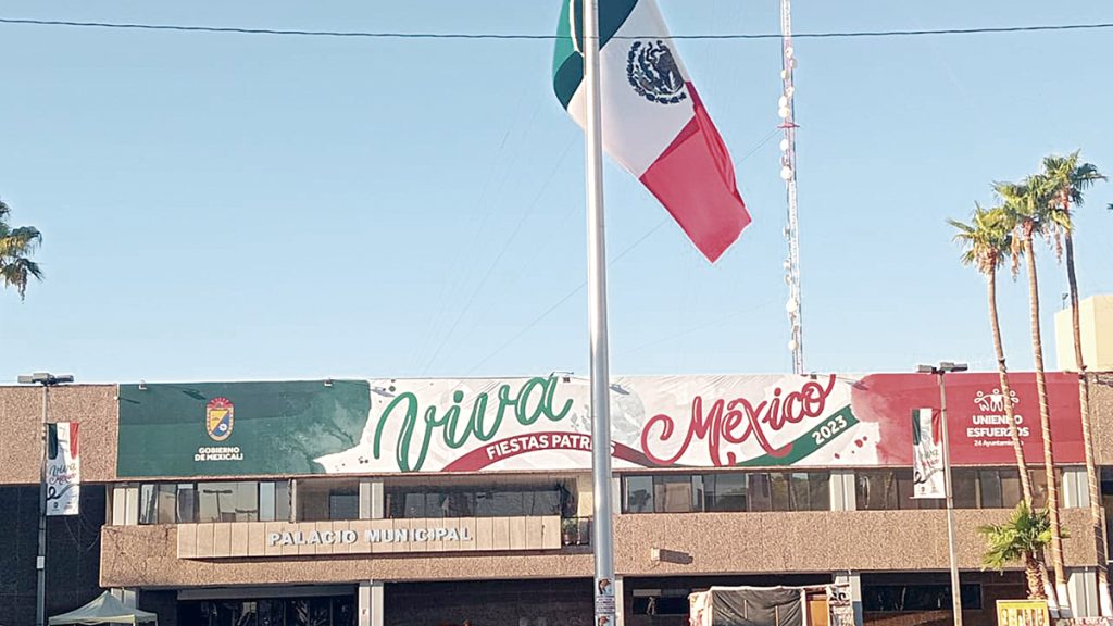 MEXICALI. – Había sido tradición que, en edificios del gobierno del estado y otras instalaciones del poder publico tuvieran, en el mes de septiembre, colores alusivos a las Fiestas Patrias, pero en esta ocasión, el gobierno de Marina del Pilar Ávila Olmeda omitió, tal vez por cuestión de presupuesto, darle al edifico del Centro de Gobierno el colorido característico de los festejos septembrinos, prefiriendo que predomine el color distintivo de MORENA; en cambio, la casa municipal si recordó la tradición, como muestran estas fotografías de RAFAEL PEREZ Limon.