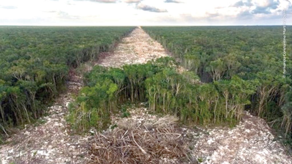 Según el fotógrafo y biólogo, más de 6 mil hectáreas (es decir más de 10 millones de árboles) fueron deforestados para dar lugar a las vías del tren que recorrerá 5 estados en el sureste de México.