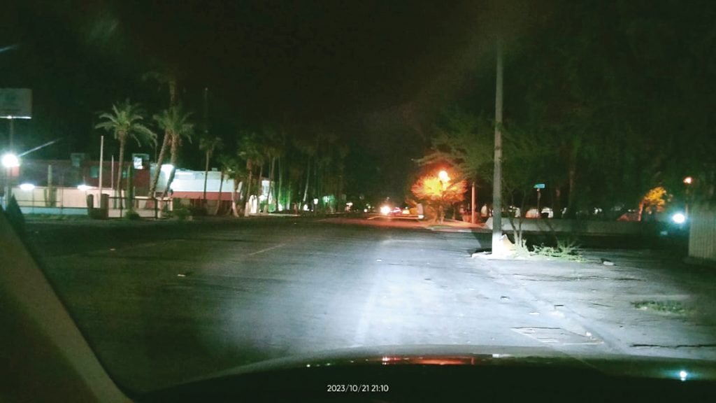 MEXICALI. – Conociendo la proclividad de la alcaldesa Norma Alicia Bustamante Martínez, hacia el arte histriónico, muchos cachanillas llegaron a considerar que, la penumbra en algunas vialidades como las avenidas Madero y Reforma, por la cercanía a las festividades de Halloween y de Día de Muertos, se trataba de una obra teatral, Fotografía de Rafael Pérez Limón.