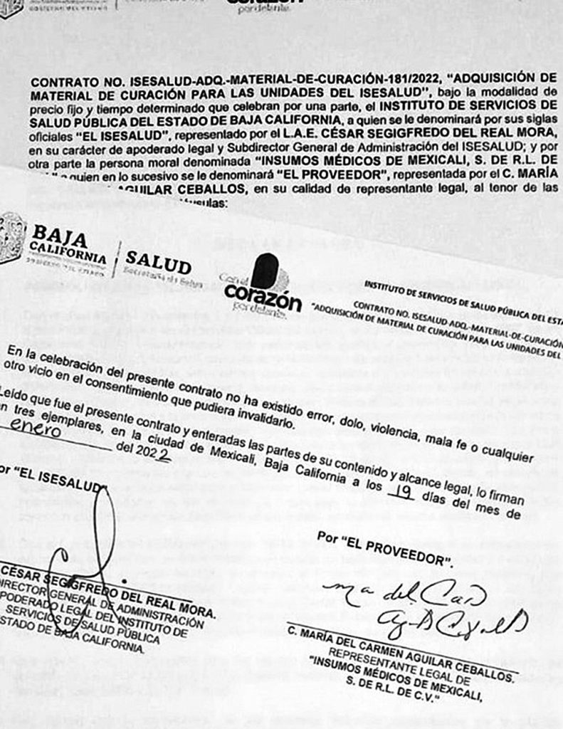Contrato 181/2022 de Insumed firmado por mamá de Oficial Mayor