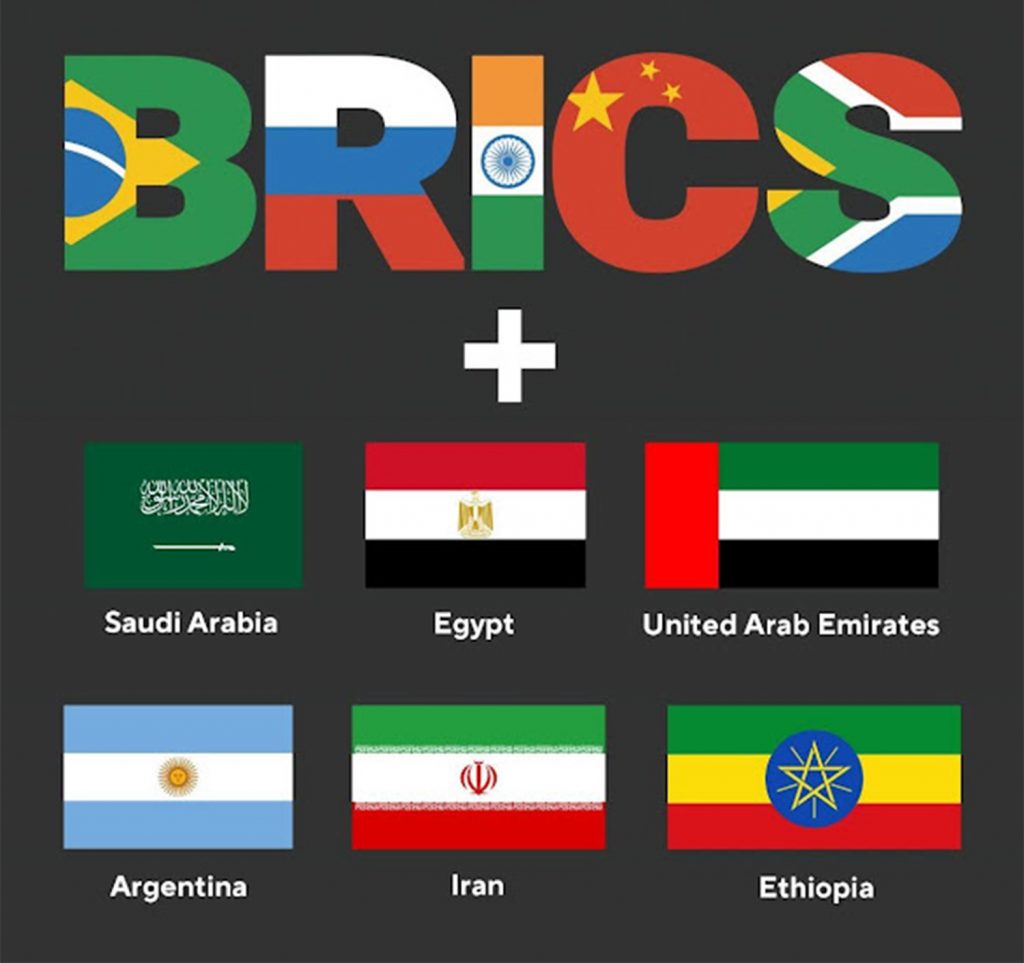 En los albores de 2024, a partir del 1 de enero, cinco países más se convirtieron en miembros de pleno derecho de los BRICS, una asociación transnacional, que hasta entonces estaba formada por Brasil, Rusia, India, China y Sudáfrica, y así se convirtieron en BRICS+ (BRICS Plus), totalizando diez países.