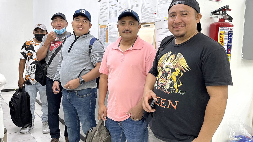 MEX7220. MÉRIDA (MÉXICO), 29/01/2024.- Jornaleros posan antes de viajar a Canadá como parte del Programa de Trabajadores Agrícolas Temporales, el 26 de enero de 2024 en la ciudad de Mérida (México). México y Canadá cumplen este lunes 80 años de relaciones diplomáticas, entre las que destacan 50 años del Programa de Trabajadores Agrícolas Temporales (PTAT), con el que este año 27.000 jornaleros mexicanos irán al país del norte para laborar en el campo. EFE/Martha López Huan