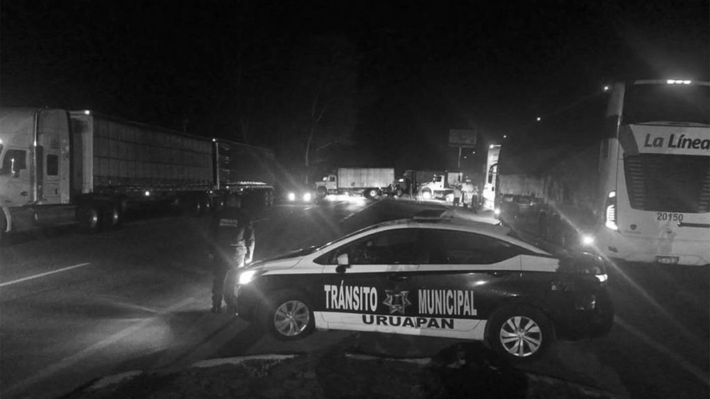 Transportistas bloquean accesos de Uruapan por presuntas extorsiones.