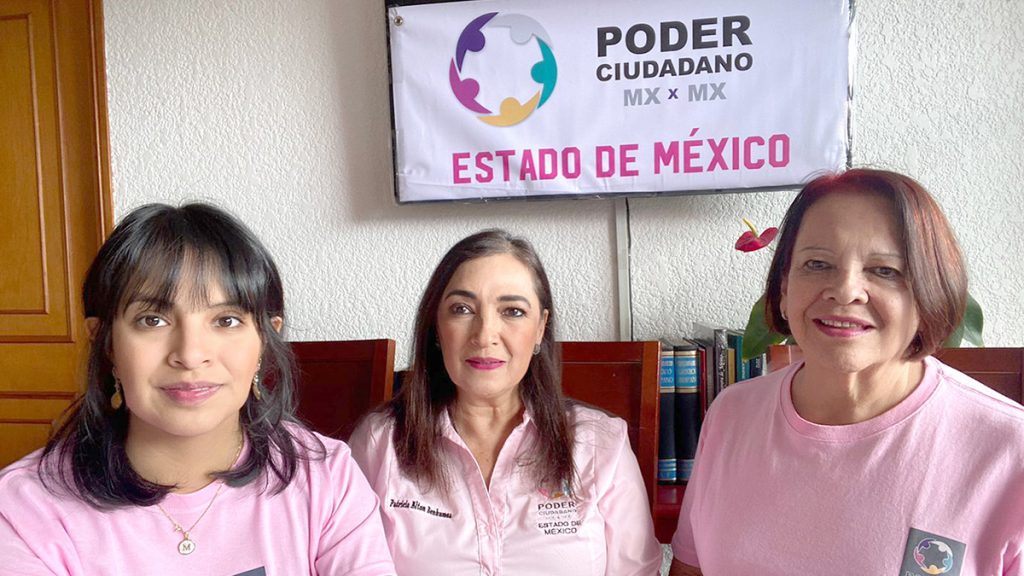 1.- Miranda Martínez, coordinadora de los jóvenes; Patricia Elton Benhumea, coordinadora estatal en el Estado de México y Teresa Soria, coordinadora del Distrito Electoral 24 en el municipio de Naucalpan, todas de Poder Ciudadano en el Estado de México.