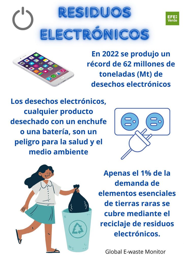 Según el cuarto Monitor Mundial de Residuos Electrónicos de la ONU, en 2022 generamos la cifra récord de 62 millones de toneladas de desechos electrónicos, un 82 % más que en 2010, y sólo se recogió y recicló adecuadamente el 22,3 %, es decir, menos de una cuarta parte.