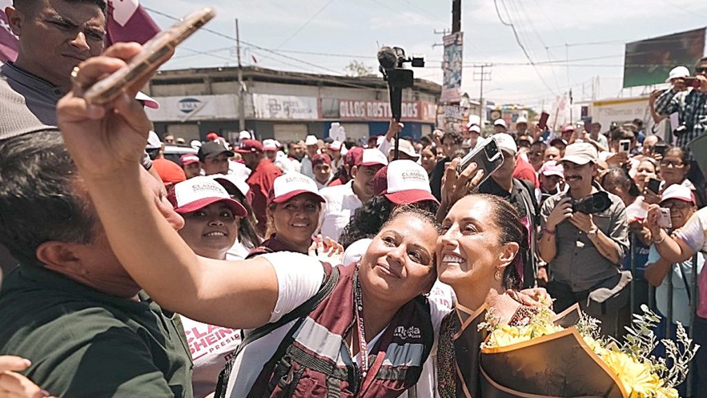 ‘Selfi’ morenista. Claudia Sheinbaum afirmó que con su ‘guerra sucia’, la oposición lo que ha logrado es “hacernos más fuertes”, y aseguró que ganará el debate del domingo. Foto ‘La Jornada’