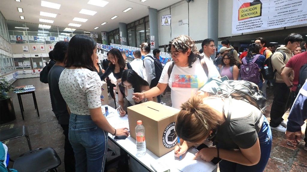Urnas en la UNAM. Simulacro electoral ayer en Ciudad Universitaria para elegir al presidente de la República. Hubo actividad en la mayoría de las facultades y sólo podían votar alumnos, docentes o trabajadores de la casa de estudios. Foto Luis Castillo