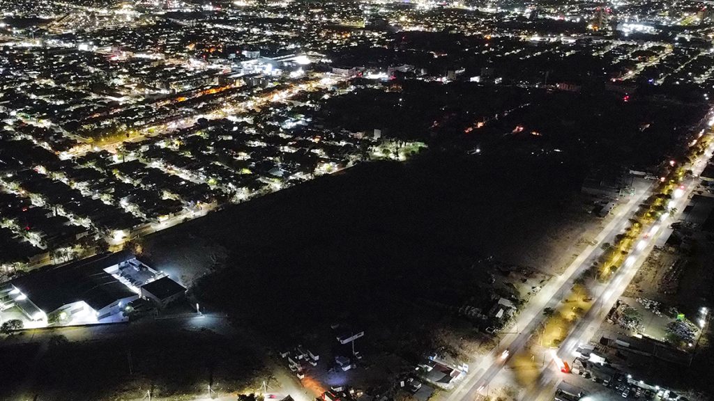 MEX7065. LEÓN (MÉXICO), 07/05/2024.- Fotografía aérea que muestra un apagón eléctrico este martes en algunas zonas de la ciudad de León (México). El Centro Nacional de Control de Energía (Cenace) de México informó este martes que el Sistema Interconectado Nacional (SIN) entró en "estado de emergencia" debido a una alta demanda de electricidad provocada por la segunda onda de calor que se vive estos días en México. EFE/Luis Ramírez