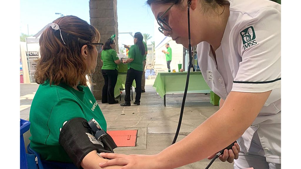 Al presidir la ceremonia la jornada, la representante del IMSS en Baja California, doctora Desirée Sagarnaga Durante hizo un reconocimiento a las y los 79 estomatólogos, cuatro promotores y 42 pasantes que se desempeñan en la Representación Baja California, por el profesionalismo que imprimen como coadyuvantes en el cuidado integral de la salud de la población derechohabiente, tanto en las unidades médicas del Instituto como en las jornadas extramuros, que se llevan a cabo en planteles educativos y ferias de salud, entre otras actividades.
