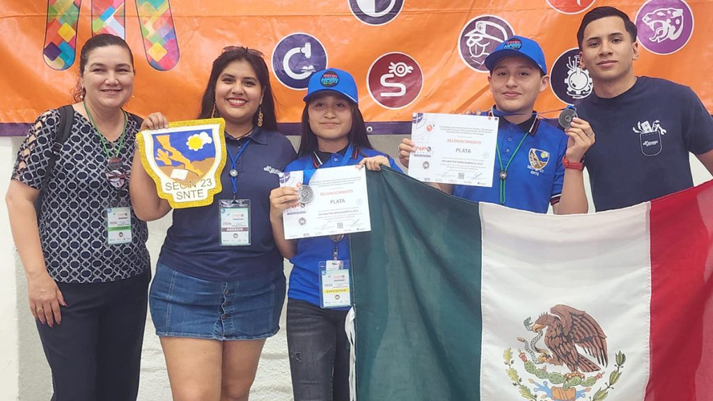 MEXICALI.- Alumnas y alumnos de la Secundaria General No. 23 “SNTE” del municipio de Mexicali, obtuvieron Medalla de Plata y Mención Honorífica en el concurso de Ciencia y Tecnología denominado “Informatrix Iberoamérica 2024” realizado en la ciudad de Guadalajara, Jalisco.