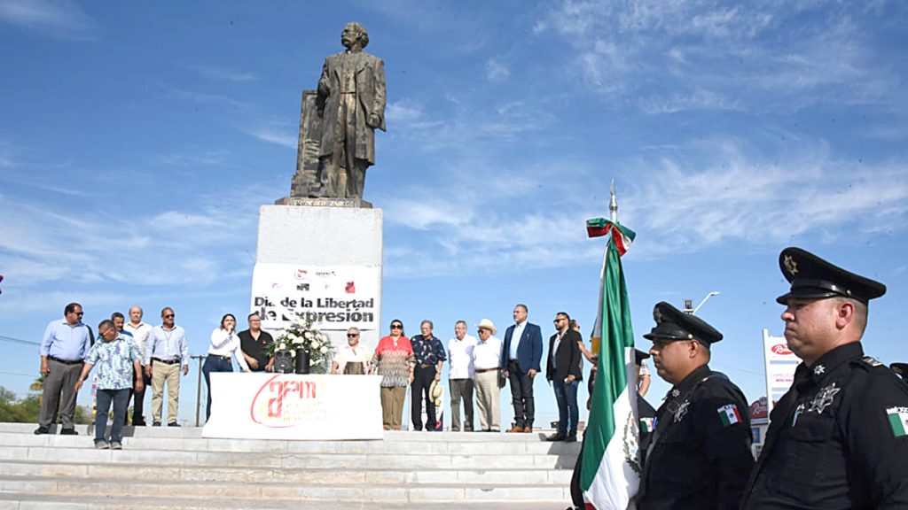 MEXICALI. – Con motivo de la celebración del Dia de la Libertad de Expresión, los organismos de periodistas tras una guardia de honor en el monumento a Francisco Zarco, rendir honores a la bandera y entonar el Himno Nacional, hicieron un pronunciamiento por conducto de Eva Velazco: