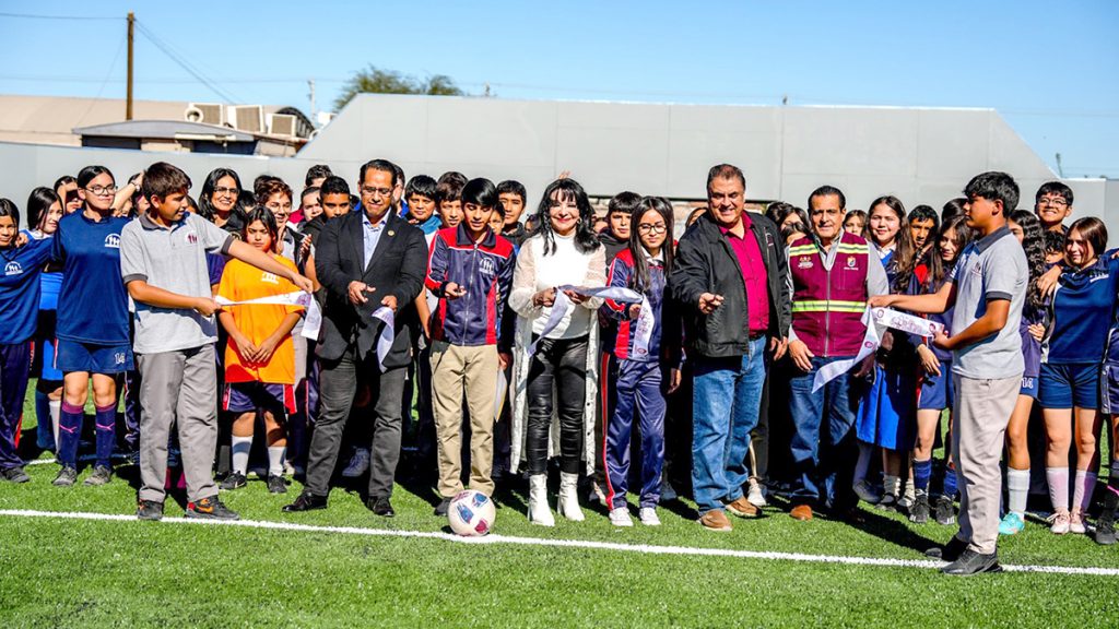 La alcaldesa de Mexicali resaltó la importancia de la participación ciudadana en este proyecto realizado con recursos del Presupuesto Participativo: «Gracias a la iniciativa de los vecinos, hoy podemos contar con un espacio deportivo de primer nivel para nuestros jóvenes. Este campo no solo es un lugar para practicar fútbol, sino también un espacio para fomentar la sana convivencia y el desarrollo integral de nuestros estudiantes».