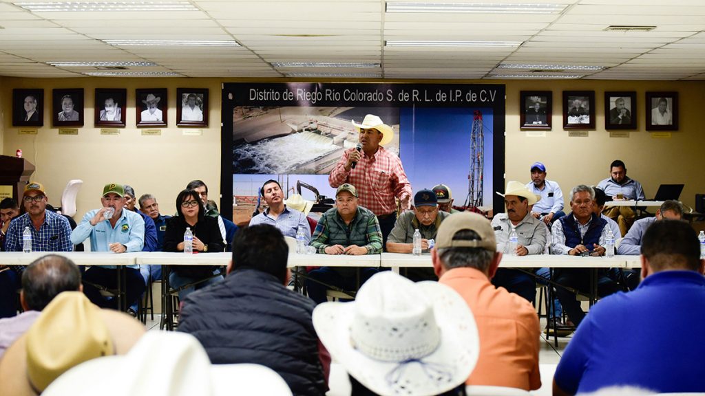 Visiblemente desilusionados, los integrantes de la Comisión de Usuarios de los Módulos de Riego informaron a una parte de la asamblea, que las autoridades estatales gestionarán una reunión con Relaciones Exteriores y los usuarios, así lo dio a conocer el representante de esta organización, Javier Gaona Ochoa.