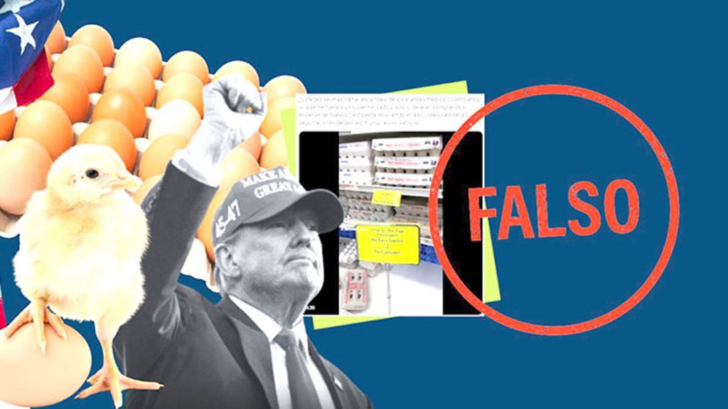 Usuarios de X, Facebook y TikTok difunden publicaciones en las que se dice que la escasez de huevos y el aumento de precio que está experimentando este producto en territorio estadounidense se debe a las «redadas contra migrantes» y «las medidas arancelarias» de la Casa Blanca.