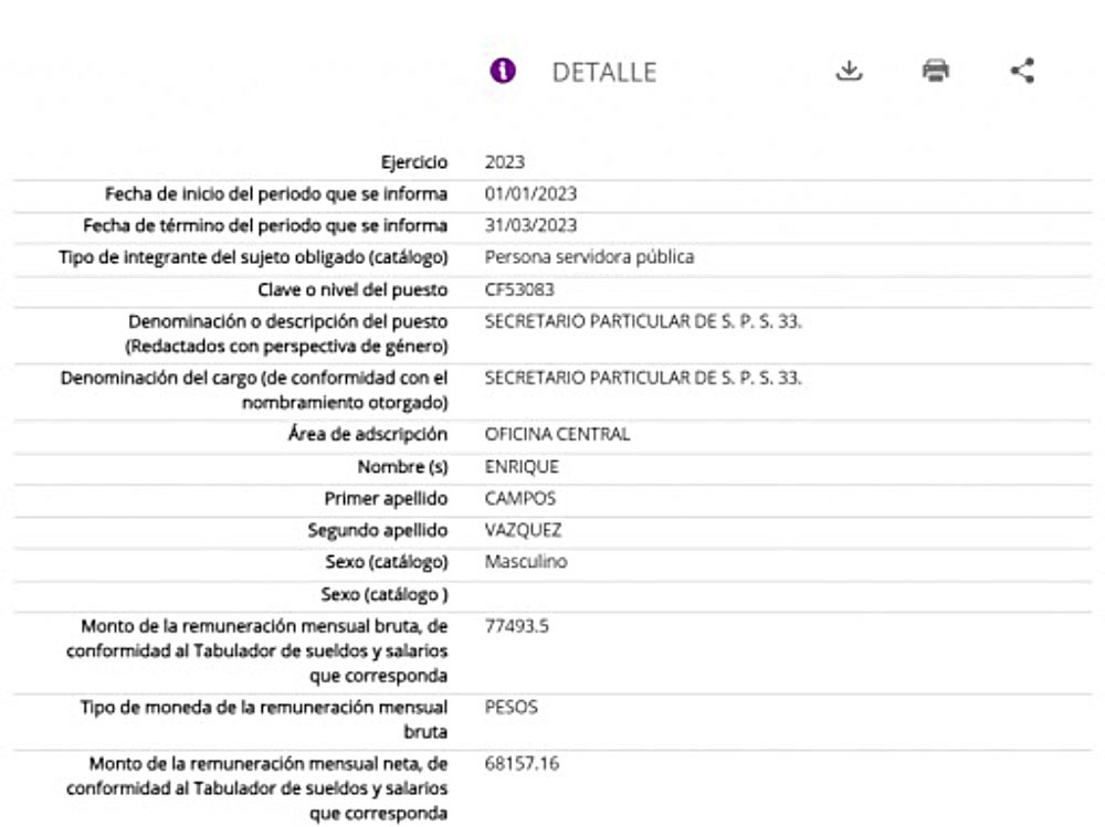 Sueldo de abril de 2023, más 45 mil 661 pesos al mes de compensación.