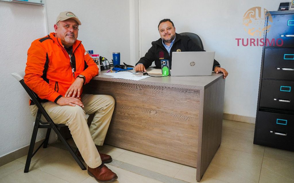 SAN QUINTÍN, B.C. – Con el respaldo de la presidenta del Primer Ayuntamiento de San Quintín, Miriam E. Cano Núñez, la Dirección de Turismo, encabezada por Alfredo Ortega, sostuvo una reunión con Esteban Durón, representante del Grupo de Senderismo de San Quintín. Durante el encuentro, se acordó trabajar en conjunto para desarrollar e instalar señalética adecuada en las principales rutas del municipio, con el objetivo de fortalecer la seguridad y enriquecer la experiencia de quienes disfrutan del senderismo.