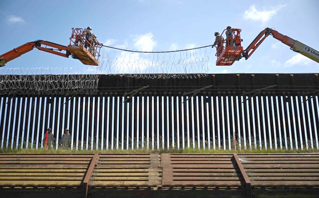 EU refuerza muro entre Tijuana y San Diego. Personal militar estadunidense instala alambre de púas en la parte superior del muro entre San Diego y Tijuana, cerca del puerto de entrada de San Ysidro. Foto Afp