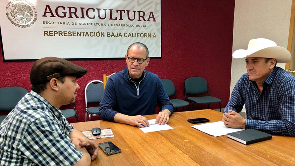 CAMPESINOS. – Con el propósito de dar continuidad a los temas y compromisos surgidos durante la reunión con productores, industriales y representantes de la Secretaría de Agricultura y Desarrollo Rural Federal y Estatal, el Lic. José ANTONIO RAMÍREZ Gómez, se reunió con el presidente del Consejo Estatal de Productores de Trigo de Baja California, HORACIO GÓMEZ Carranza… La reunión, solo fue de carácter informativo, contó con la participación del Jefe del Distrito de Desarrollo Rural 002, Río Colorado –Valle de Mexicali, Ingeniero CARLOS ZAMBRANO Reyes… A la Gobernadora, MARINA DEL PILAR ÁVILA Olmeda, le solicitaron la implementación de UN INSTRUMENTO DE ADMINISTRACIÓN DE RIESGO, QUE LES DÉ CERTEZA ECONÓMICA, AL FINAL DE LA COSECHA… EL FUNCIONARIO FEDERAL, señaló que LA REPRESENTACIÓN ESTATAL HA ESTADO PENDIENTE DE DICHA SOLICITUD, POR LO QUE SOLICITÓ A LA COORDINACIÓN GENERAL DE OPERACIÓN TERRITORIAL (CGOT), QUE GIRE INSTRUCCIONES PARA ATENDER LOS PLANTEAMIENTOS expuestos por los representantes del Consejo Estatal de Productores de Trigo de Baja California.