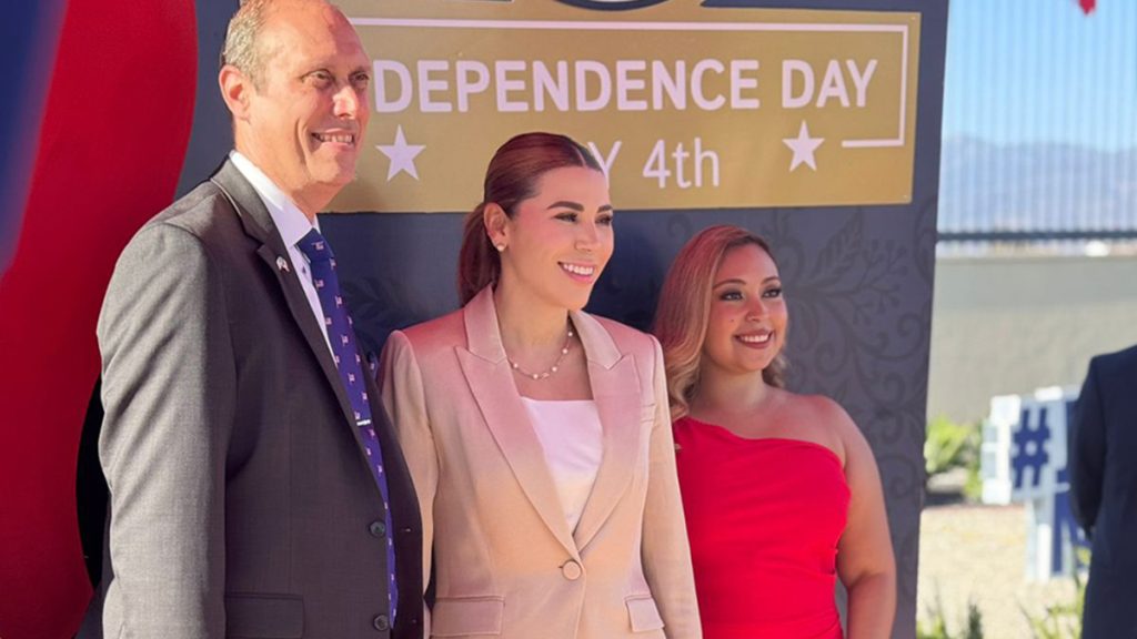 En el marco del 249 aniversario de la independencia de los Estados Unidos, la gobernadora de Baja California, Marina del Pilar Avila Olmeda, asistió como invitada por el cónsul General de EE.UU. Christopher Teal, a la ceremonia conmemorativa, donde resaltó la estrecha relación entre el estado y el país vecino, sustentada en valores compartidos como el respeto, la cooperación y los lazos forjados por generaciones de ciudadanos a ambos lados de la frontera.