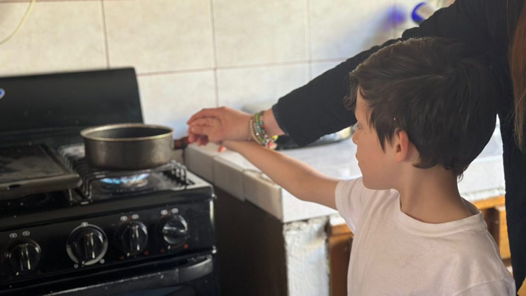 Asimismo, se debe tener precaución en la cocina, se deben cubrir ollas y sartenes, colocar sus mangos hacia adentro para evitar que sean alcanzados fácilmente, y mantener fuera del alcance cerillos, encendedores y cualquier material inflamable.