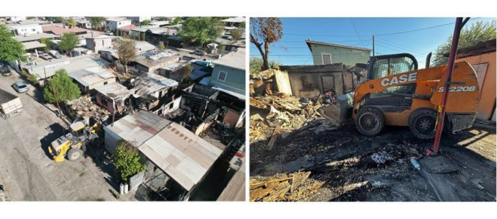 En apoyo a ocho familias que desafortunadamente sufrieron daños en sus hogares a causa de incendios el pasado viernes en la colonia Baja California, el Gobierno de Mexicali, a través de la Dirección de Servicios Públicos, inició las labores de limpieza en los predios afectados.
