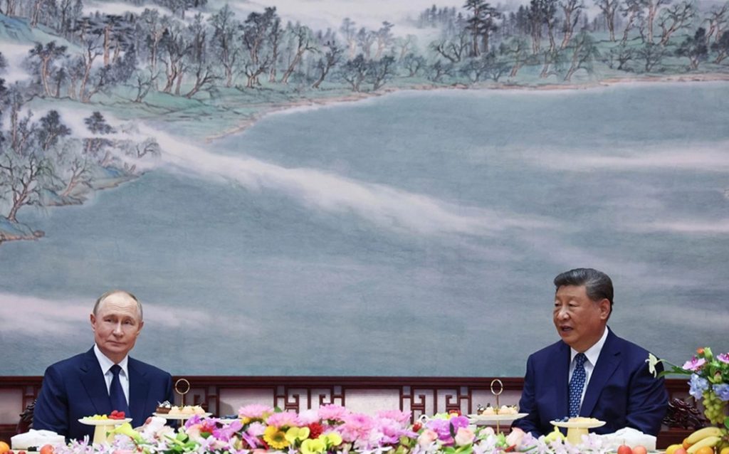 Los presidentes Vladimir Putin, de Rusia, y Xi Jinping, de China, durante su encuentro de ayer en el Gran Salón del Pueblo en Pekín, China. Foto Ap