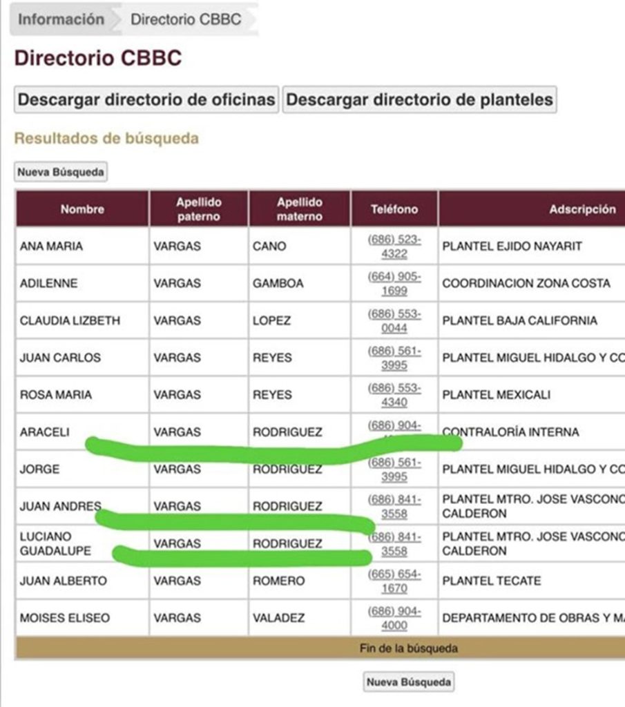 No entró ella en los jueces comunes, pero Juan José Pon le ayudó a acomodar a esa persona como jueza civil en Ensenada, y lo hizo Pon porque Arregui no tiene relación con Molina ni con Fragoso. Lorena será quien seguramente tendrá el caso del despojo… Lorena Vásquez tomó confianza en Tijuana donde fue acomodada por Iván Rosalio Medina Mejía, quien es delegado de Tijuana y que es bien sabido que mueve la STPS a placer en todo el Estado”.