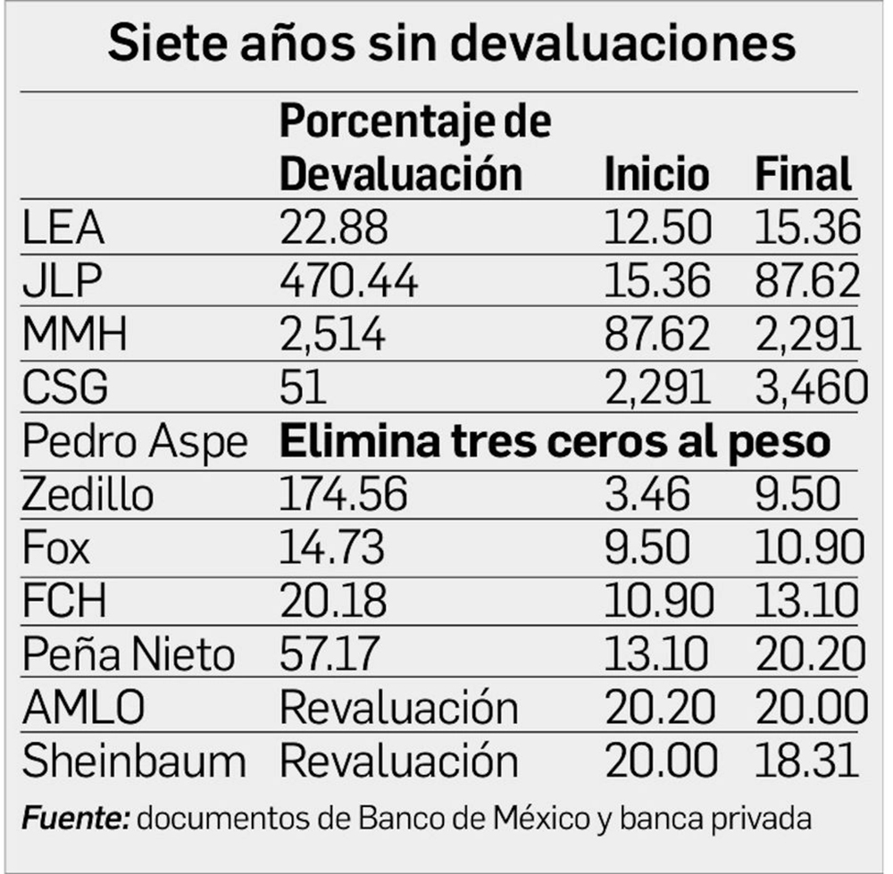 El aumento de salarios y los programas sociales han sido la base para que salieran de la pobreza más de 13 millones de mexicanos en los años recientes, pero también cuenta que el peso no se ha devaluado. Las catastróficas devaluaciones de los presidentes del Prianismo dejaron en la miseria a millones de personas y alentaron la emigración hacia Estados Unidos. En los últimos siete años –seis de AMLO y el primero de Claudia Sheinbaum– nuestra moneda incluso se ha revaluado.