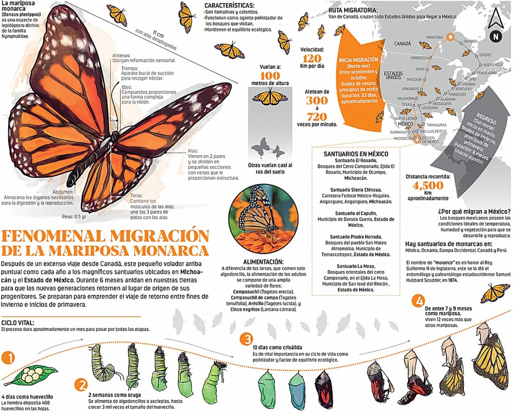 La monarca emprende un viaje épico de más de 4,000 kilómetros para llegar a México. Ninguna mariposa completa el trayecto de regreso: varias generaciones se encargan de mantener viva la ruta, pero es la llamada “generación Matusalén” —la que nace a finales de verano— la que logra alcanzar los bosques templados de oyamel en Michoacán y el Estado de México.