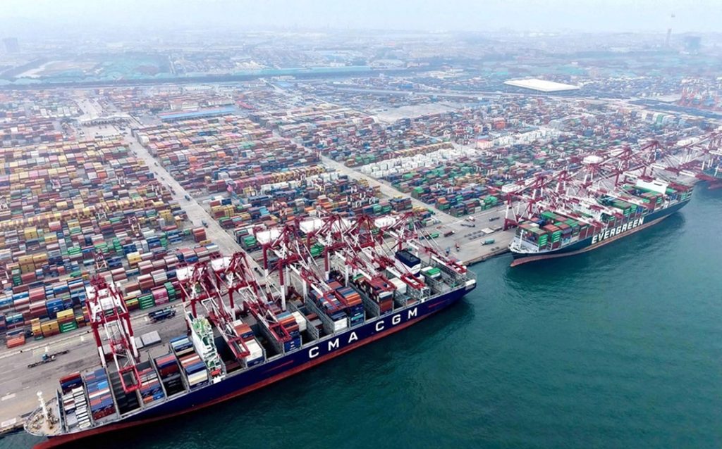 Buques portacontenedores en un puerto de Qingdao, en la provincia oriental china de Shandong, el 24 de septiembre de 2025. Foto Afp / China OUT