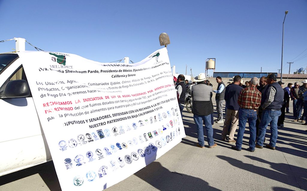MEXICALI. – Tras una reunión donde se analizaron los efectos negativos de la reforma a la Ley de Aguas de la presidenta Claudia Sheinbaum, aprobada por los legisladores de Morena y sus satélites, los usuarios del agua determinaron no solo bloquear carreteras, sino también la garita de la aduana comercial, independientemente de otras acciones legales y hasta el cierre de las compuertas del canal que suministra agua al acueducto Rio Colorado Tijuana.
