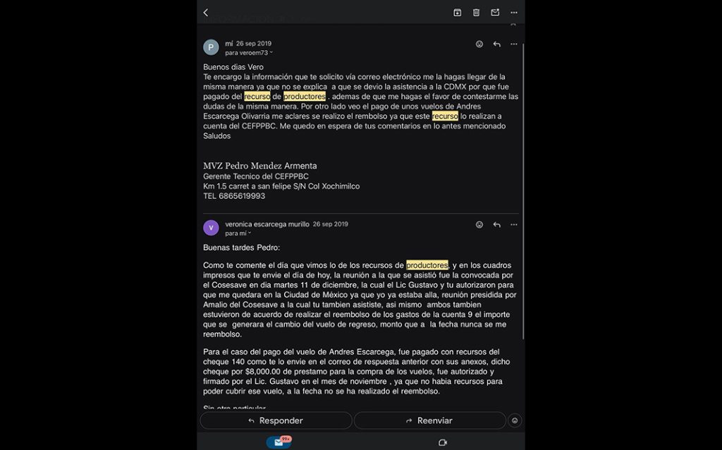 Bueno en la evidencia que nos hicieron llegar se puede ver cómo la contadora que tiene años en comité, se le exige que deje claro cómo utilizó recursos sin autorización, podemos leer que el recurso es utilizado para un familiar suyo, que conveniente menciona que Gustavo lo autoriza, esto sin antes pasarlo por el consejo, que es quien debe autorizar esos gastos, los cuales son recursos para acciones de sanidad no para viajes y vuelos de familiares.